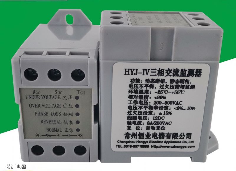 HYJ-1V、HYJ-IV型號的產(chǎn)品是一種三相交流監(jiān)測器,相序繼電器。主要用于交流50Hz三相三線制380V電力系統(tǒng)中電源端和負(fù)載端同時保護(hù)的場合,電源端具有過電壓、欠電壓、斷相、相序、三相不平衡保護(hù)控制功能,負(fù)載端具有斷相、不平衡保護(hù)控制功能。還適用于空調(diào)壓縮機(jī)、風(fēng)機(jī)、水泵等設(shè)備作保護(hù)之用。