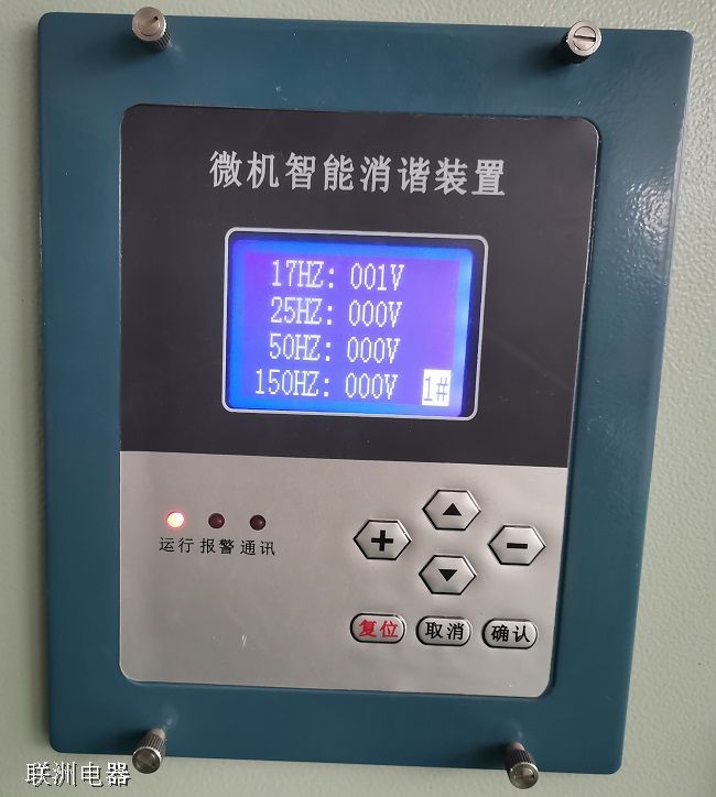 微機(jī)型諧振消除裝置可以實(shí)時(shí)監(jiān)測電壓互感器開口三角 處的電壓和頻率,當(dāng)發(fā)生鐵磁諧振時(shí),裝置瞬時(shí)啟動(dòng)無觸點(diǎn)開關(guān), 將開口三角繞組瞬間短接,產(chǎn)生強(qiáng)大阻尼,從而消除鐵磁諧振。若啟動(dòng)諧振消除元件瞬間短接后,諧振仍未消除,則裝置再 次啟動(dòng)諧振消除元件,出于對電壓互感器安全的考慮,裝置共可 啟動(dòng)三次諧振消除元件。