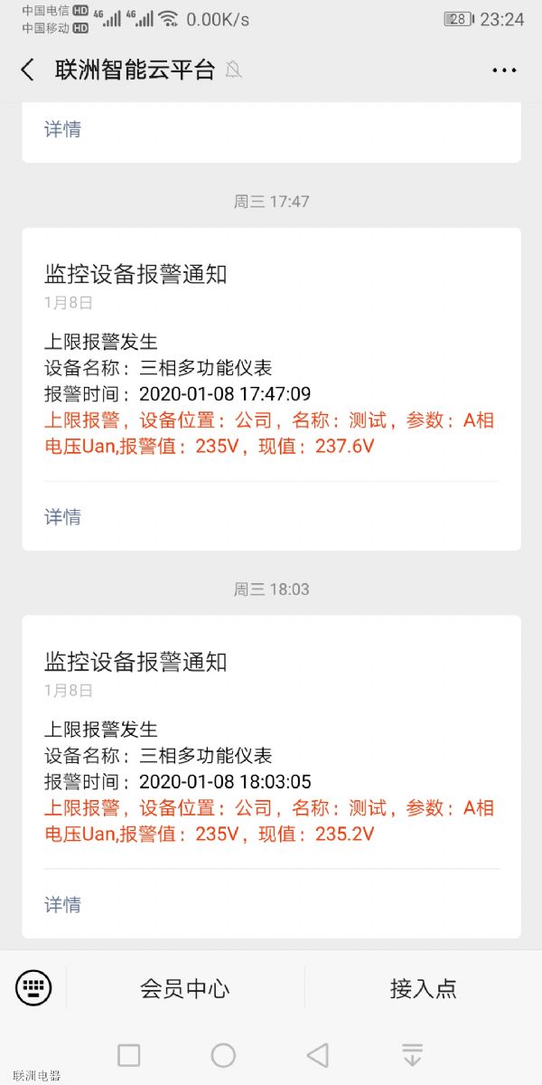 除了電腦上,手機(jī)上也可以看到,還支持微信報警,比如電流高了就發(fā)微信告訴你。