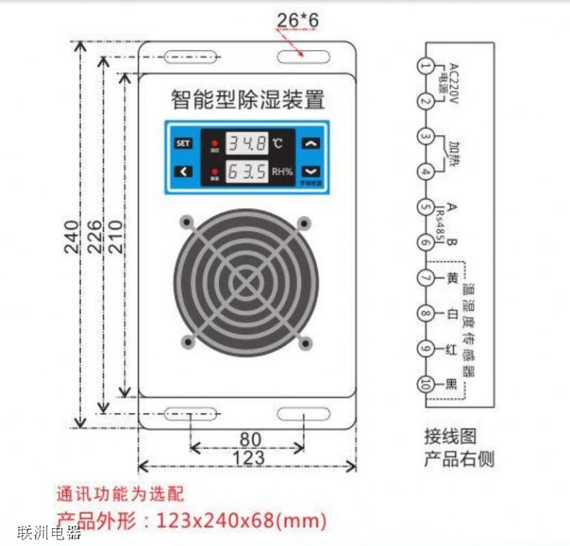 1、體積小、重量輕、安裝方便快捷,專為電力行業(yè)設(shè)計自動運行與手動除濕功能切換、溫度啟動值、除濕啟動值和濕度斷開值可調(diào)