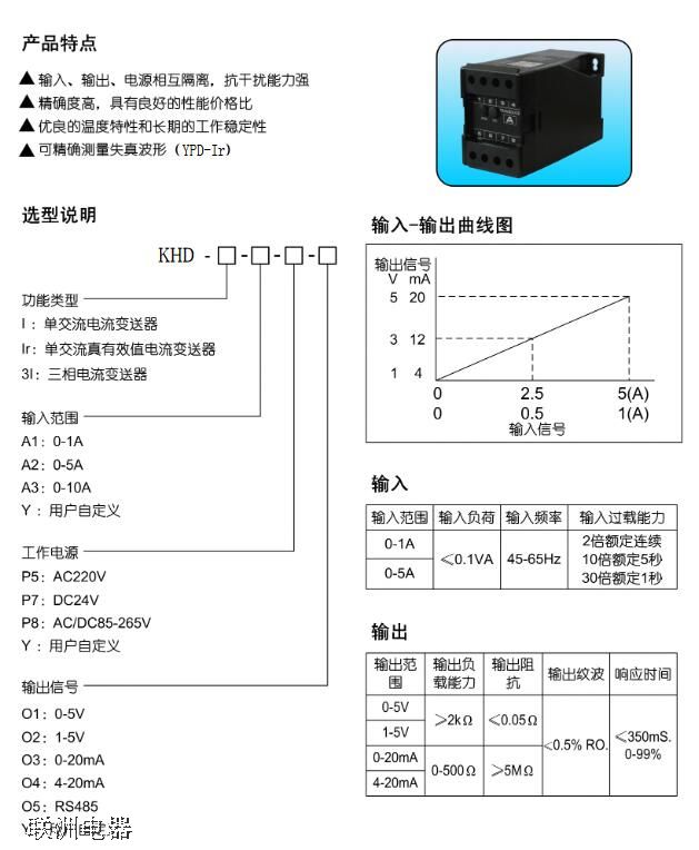 KHD-I-A2-P5-O4單相電流變送器的說明書