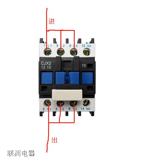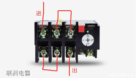 分相補(bǔ)償接觸器和熱繼電器在接線時(shí)需要串起來接,像這樣: