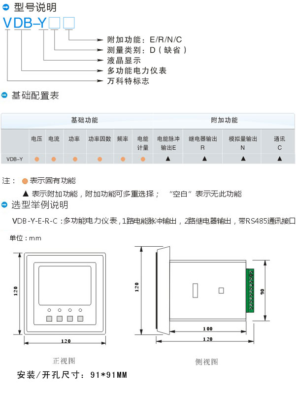 具體型號:VDB-Y-E-R-C 多功能液晶儀表 帶1路電能脈沖輸出、2路繼電器輸出(開關量輸出)、帶RS485 MODBUS RTU通訊接口