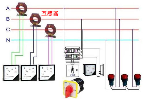三個互感器和三相電流表接線: