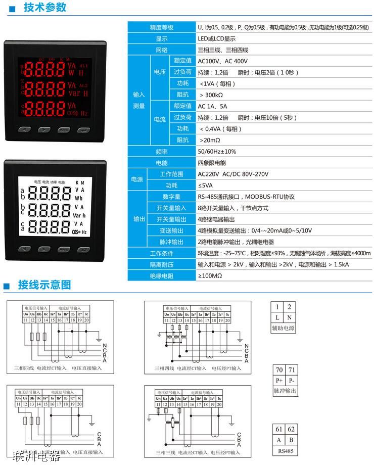 XG194EA-6S5E 多功能交流電表用于測量交流電力系統(tǒng)中的三相電壓、三相電流、功率、功率因數(shù)、電能等參數(shù)的,它的測量精度高,采樣速度快,是一款高性能儀表。